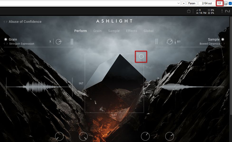 Instrumente wie Ashlight, Pharlight, Mystery, Straylight, Thrill und die Scene – Instrumente (Scene:Saffron, Scene:Willow, Scene:Nightshade, Scene:Bloodplant) haben ein XY-Pad zur Manipulation der Effekte.
