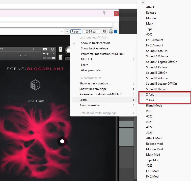 Die bessere Variante zum Speichern der Einstellung für das XY-Pad des gewählten Plugins ist das Mappen der Parameter direkt in der DAW über die Parameter. In meinem Fall ist das Reaper.